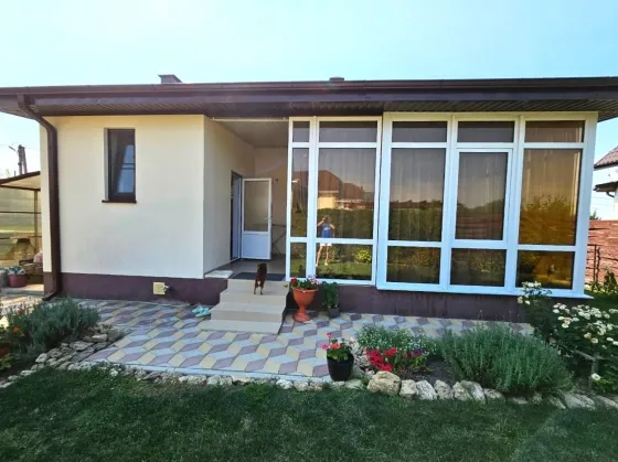 Дом в отличном состоянии, ухожен, построен на участке земли в 4,2 соток. Земля обновлена в 2020 году, обработана. Вокруг дома уложена плитка, а также место для автомобиля. Откатные ворота. С фасада забор - металлопрофиль, во дворе забор- деревянный в виде плетенки. Водопровод центральный. Септик дренажный. Свет - 15 кВт.