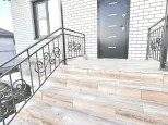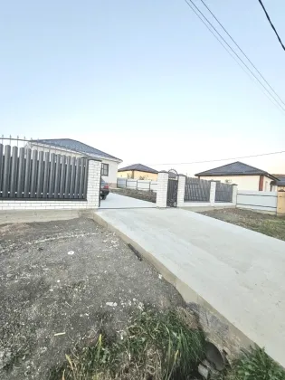 Дом новый, построен на участке земли в 8,5 соток. Дом на высоком фундаменте облицован белым кирпичем. Крыша - металлочерепица графитового цвета. Забор из металлопрофиля. Все дорожки вокруг дома, от калитки до порога забетонированы. Есть вода и свет (15 кВт). Газа нет. Канализация - септик. Завезена плодородная земля.
