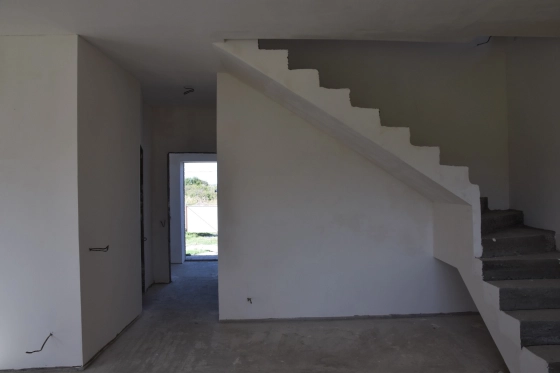Площадь дома 125 кв.м. Дом продается в предчистовой отделке. В доме 4 спальни, 2 санузла, гостинная-кухня с выходом на террасу во дворе. Большой балкон - на всю длину фасада.