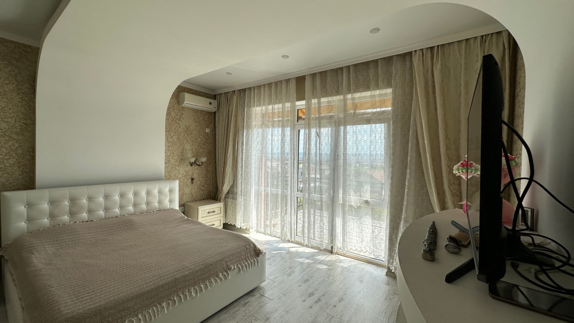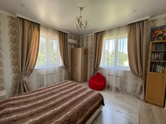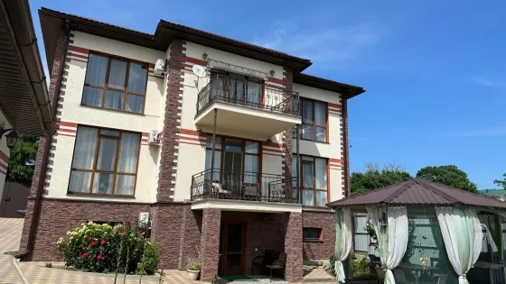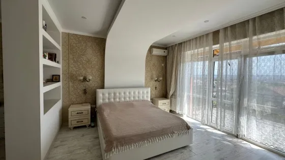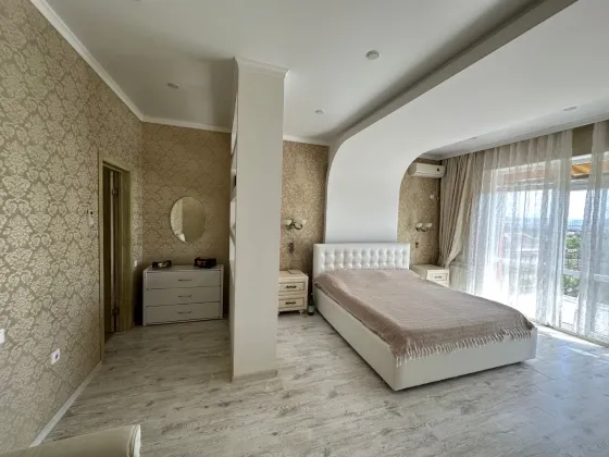 В продаже замечательный дом, общей площадью 360 кв.м. на земельном участке 10 соток земли с вместительным гаражом, бассейном и уютным земельным участком в непосредственной близости у моря. Расстояние к морю по прямой около 3 км., а со всех окон дома и даже земельного участка, открывается отличный вид на море и горы.
