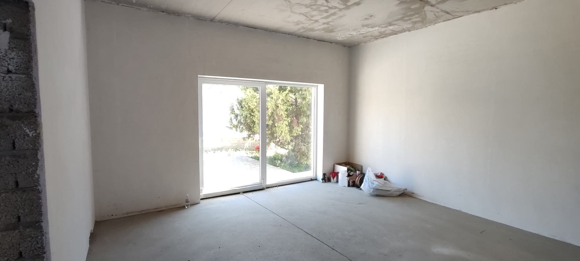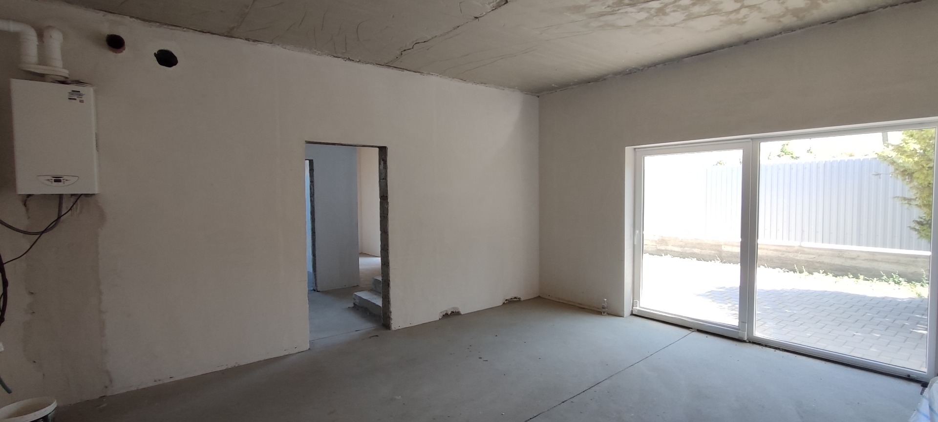 В доме на первом этаже: прихожая(14.5 кв.м), гостевая спальня(12,6кв.м), большая кухня-гостиная(26 кв.м)с выходом на участок и совмещенный сан.узел(4.5 кв.м)