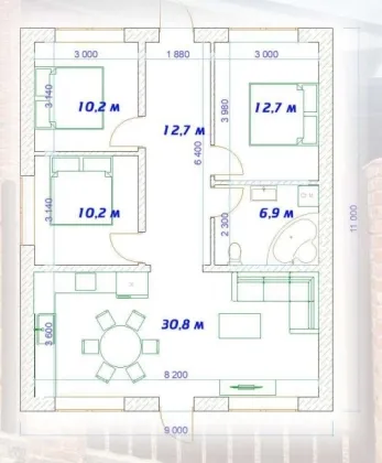 Дом общей площадью 85 кв.м. на 3,5 сотках земли - ИЖС. Дом имеет функциональную планировку: три изолированные комнаты, большая кухня-гостиная с выходом на террасу, совмещённый санузел, просторная прихожая.