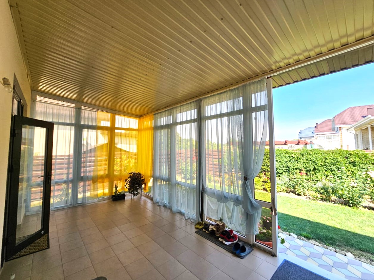 Дом в отличном состоянии, ухожен, построен на участке земли в 4,2 соток. Земля  обновлена в 2020 году, обработана. Вокруг дома уложена плитка, а также место для автомобиля.  Откатные ворота. С фасада забор - металлопрофиль, во дворе забор- деревянный в виде плетенки. Водопровод центральный. Септик дренажный. Свет - 15 кВт.