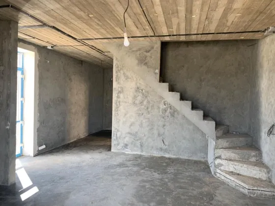 На первом этаже расположена просторная спальня площадью 11 кв.м., кухня-гостиная площадью 25 кв.м. с выходом на террасу во двор, санузел и хозяйственное помещение.