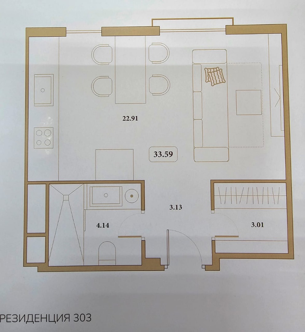 Студия - апартаменты находятся на 3 этаже, площадью 35,9 кв.м. Комната с кухней - 24 кв.м, санузел - 4,14 кв.м (с ванной), также, при желании, гардеробная - 3,5 кв.м, есть балкон. Апартаменты продаются в чистовой отделке: паркетная доска на полу и керамогранит, обои под покраску, туалетные комнаты полностью оборудованы.