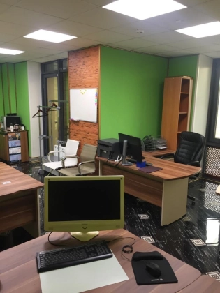 Помещение продается с мебелью - столы, стулья, 6 компьютеров, 3 принтера, сервер, холодильник, микроволновая печь, кофемашина.