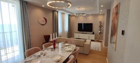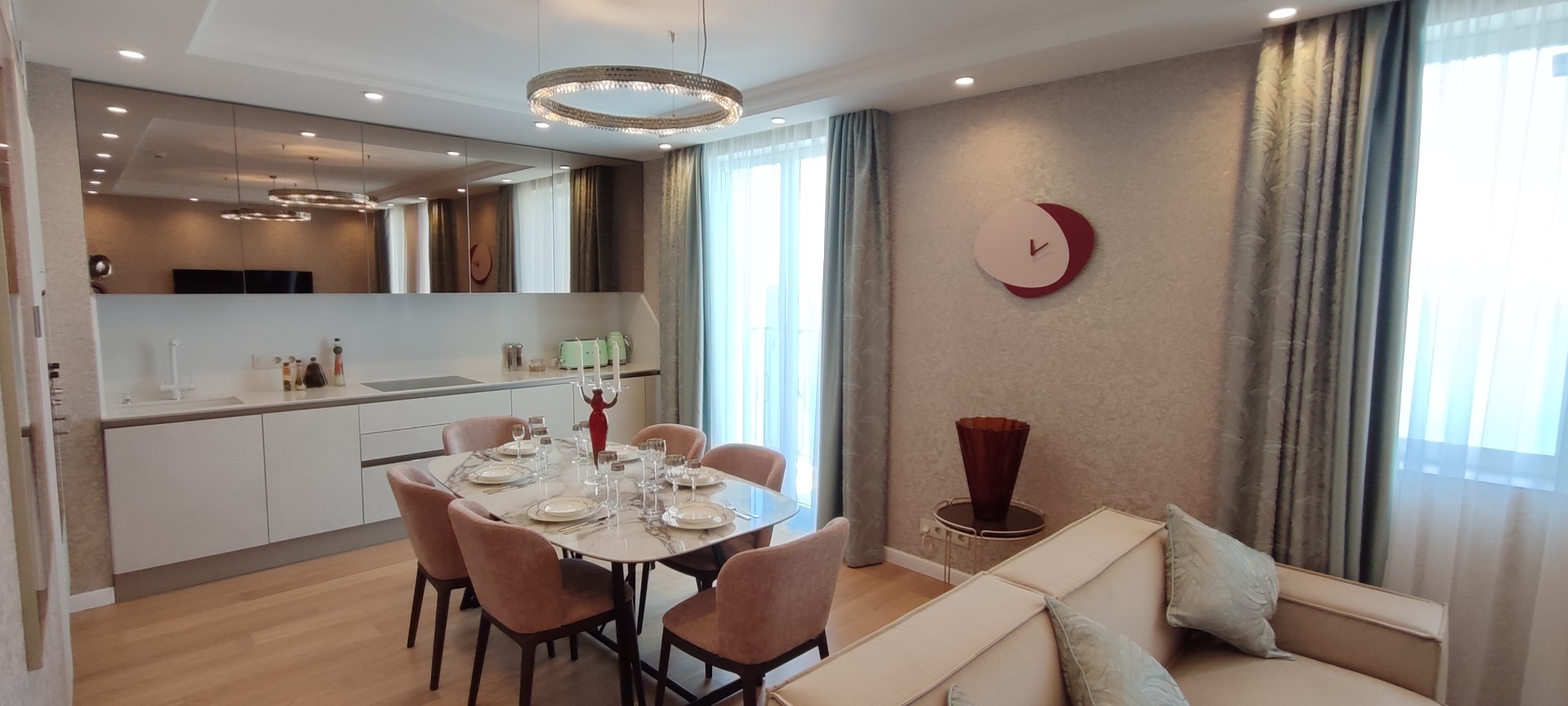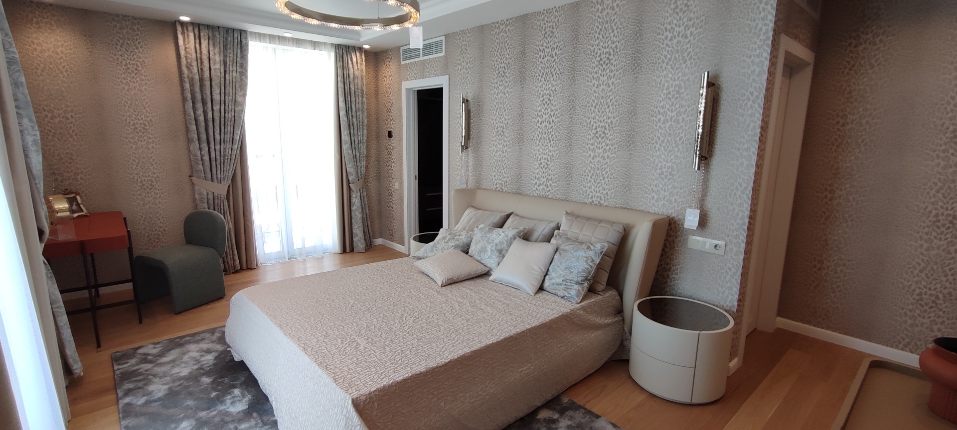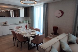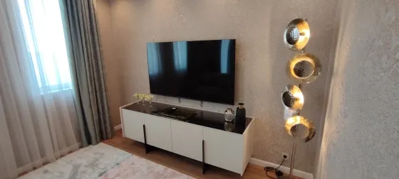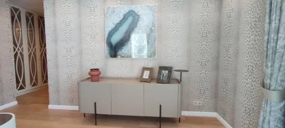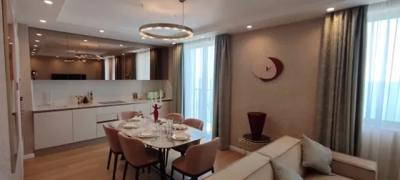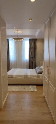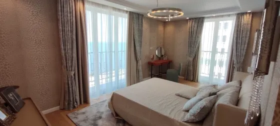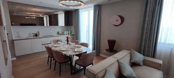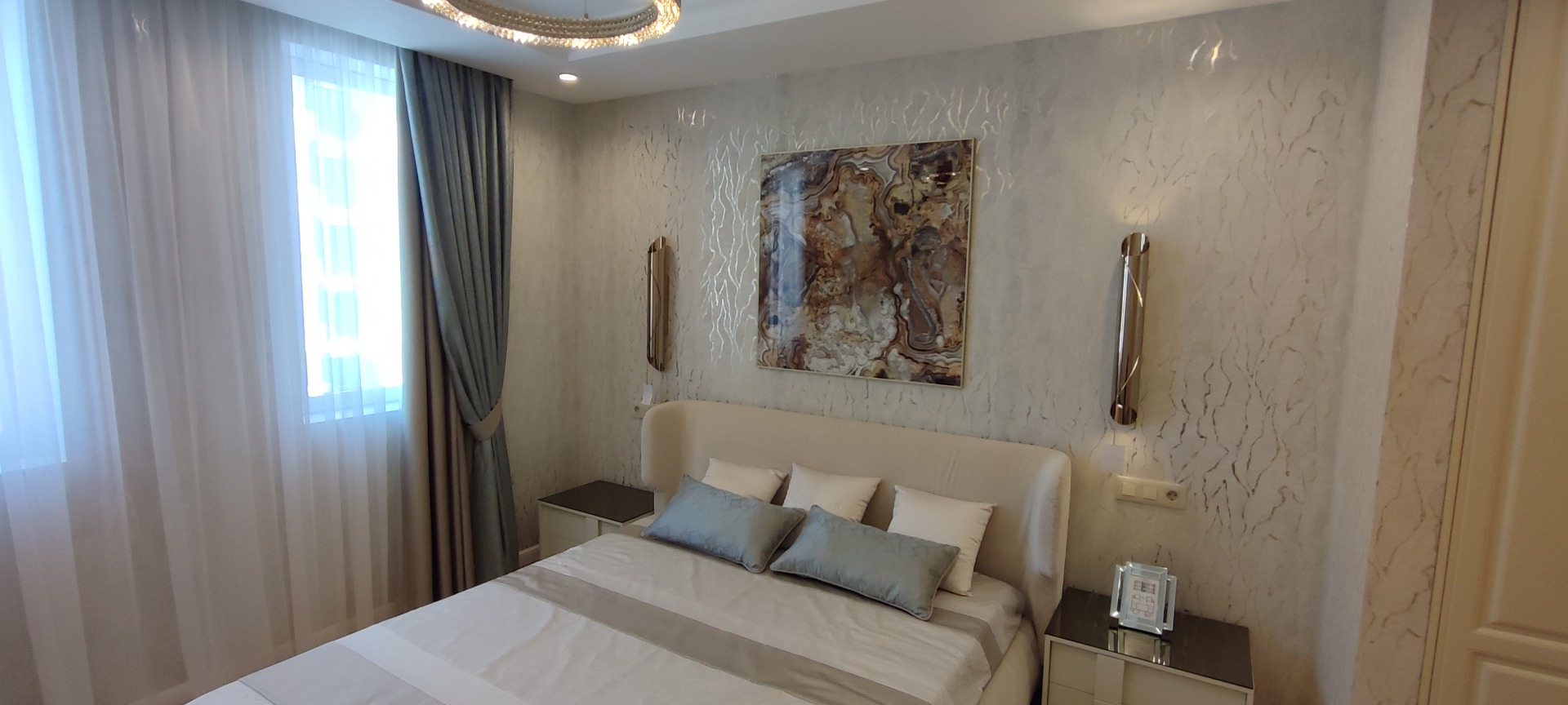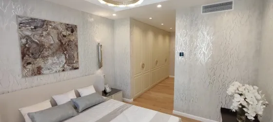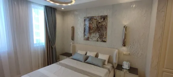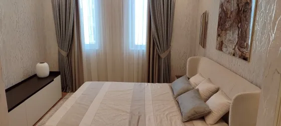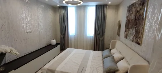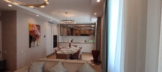108 кв.м роскоши и богатства. Очень продуманная планировка до самых мелочей. Ремонт сделан в светлых тонах. Мебель в стиле 70х годов. Словно попадаете в резиденцию Мэрилин Монро. Установлена итальянская мебель. Встроенная техника. Большая светлая кухня-гостиная. совмещенный сан.узел.Мастер-Спальня с видом на море и с отдельной гардеробной и сан.узлом. И вторая спальня так же со своим сан.узлом.