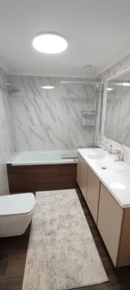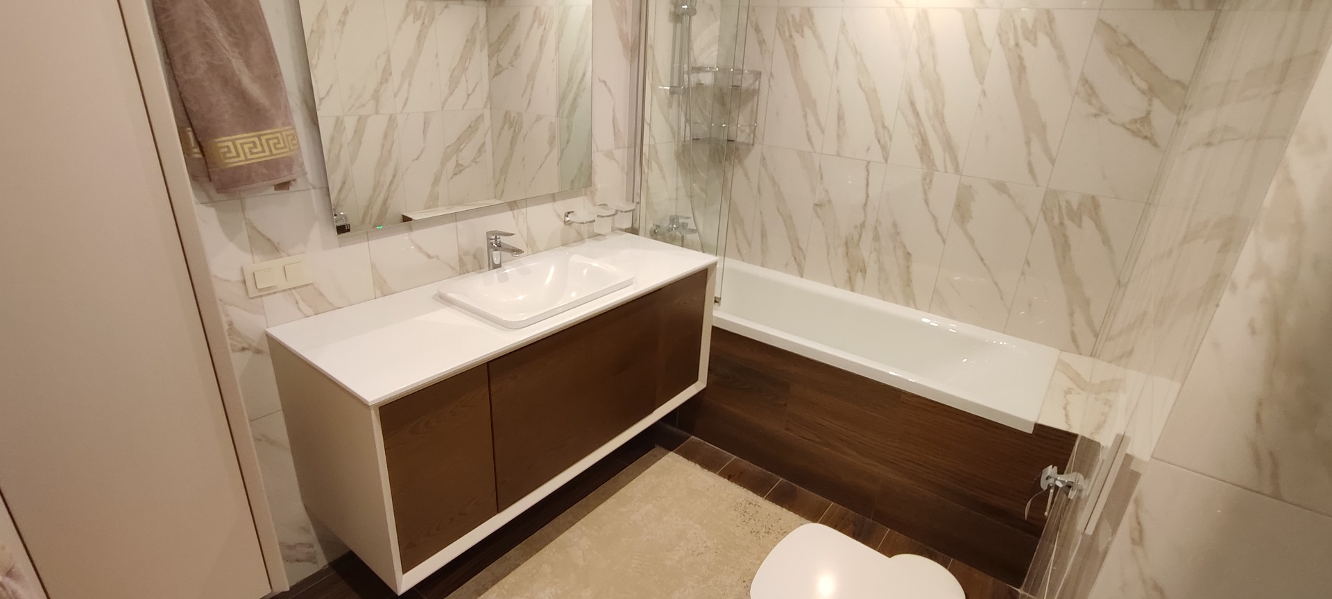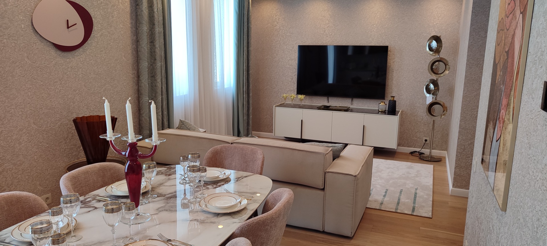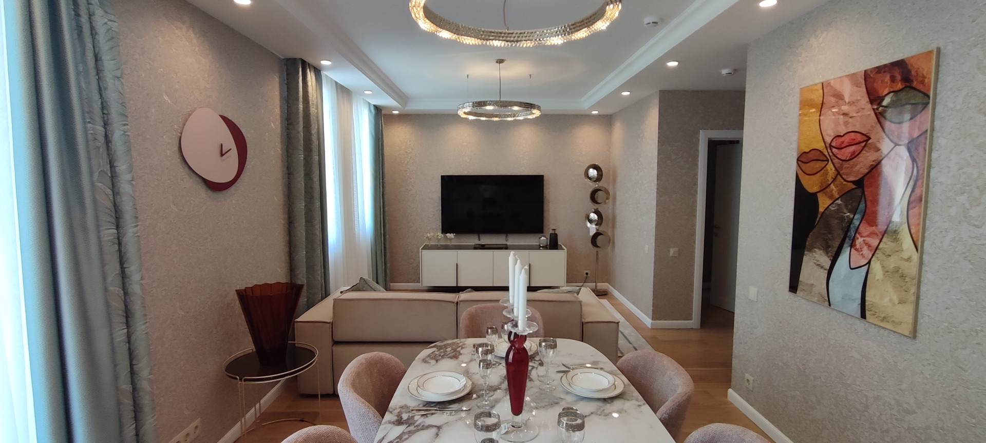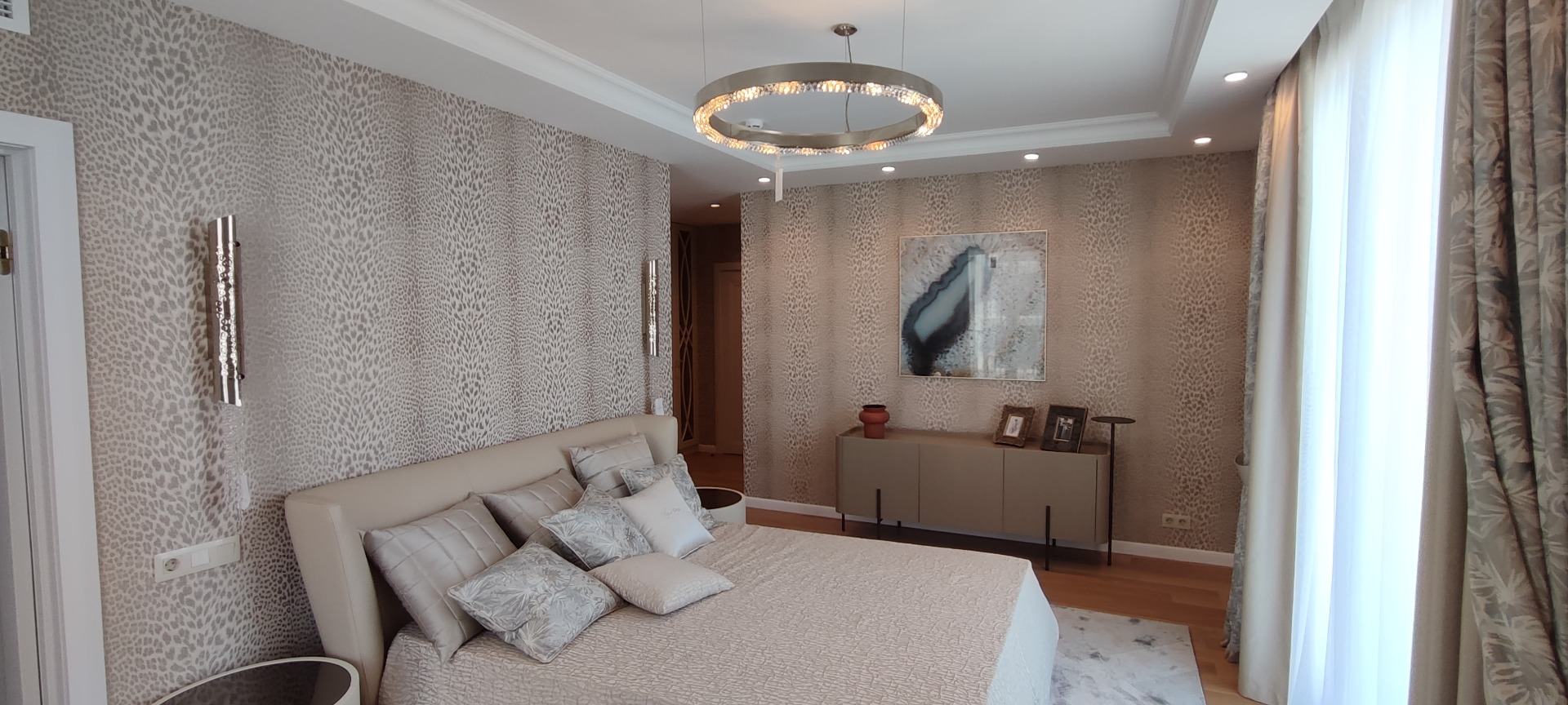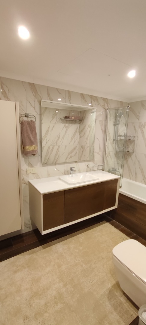 108 кв.м роскоши и богатства. Очень продуманная планировка до самых мелочей. Ремонт сделан в светлых тонах. Мебель в стиле 70х годов. Словно попадаете в резиденцию Мэрилин Монро. Установлена итальянская мебель. Встроенная техника. Большая светлая кухня-гостиная. совмещенный сан.узел.Мастер-Спальня с видом на море и с отдельной гардеробной и сан.узлом. И вторая спальня так же со своим сан.узлом.
