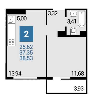 Площадь кухни, кв.м.13