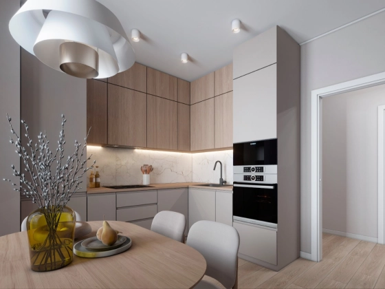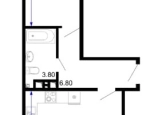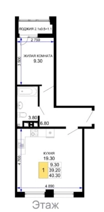 Квартира комфорт-класса находится на 8 этаже монолитного дома. Площадь квартиры 40,3 кв.м, кухня-гостинная  - 19,3 кв.м, спальня - 9,3 кв.м, санузел - 3,9 кв.м, прихожая - 6.8 кв.м.  Есть лоджия. Отделка - предчистовая: оштукатуренные стены, стяжка пола, проведена электроразводка. выведены розетки. Все коммуникации центральные.