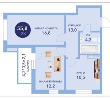 | Площадь, кв.м. | 55.8 |