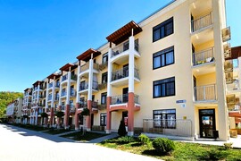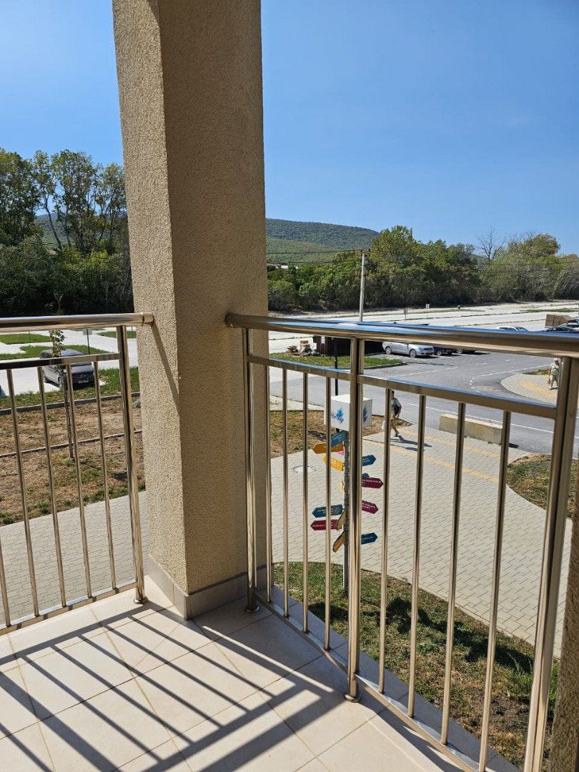 Квартира комфорт-класса находится на 1 этаж. Общая площадь квартиры 20,1 кв.м, жилая - 12,3 кв.м. Квартиры  продаются с отделкой в светлых тонах из качественных материалов. Есть открытая терраса (5,2 кв.м) с французскими оками из кухни. Вид из окна на горы и лес. Вода из собственной скважины. Отопление электрическое от собственной подстанции.
