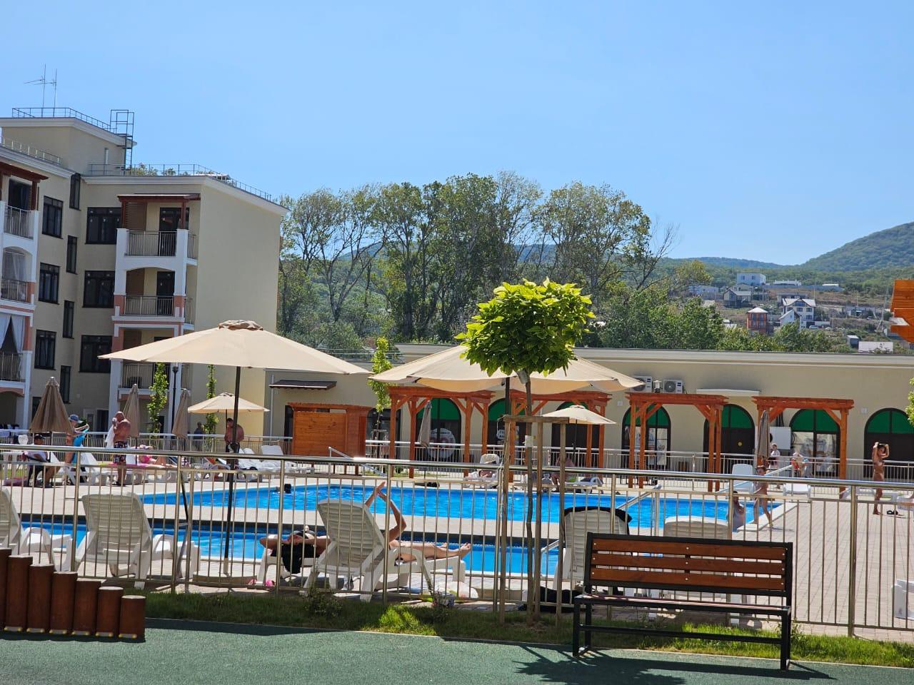 На территории комплекса есть школа, магазины, рестораны и кафе. В ближайшей перспективе строительство детского садика. Дома располагаются буквой "П" и образуются закрытые внутренние дворики, без парковочных мест. Парковка для машин находится на улице через дорогу от домов. На территории дворика расположены 2 бассейна, детские площадки, спортивные площадки с тренажерами и прогулочные аллеи.