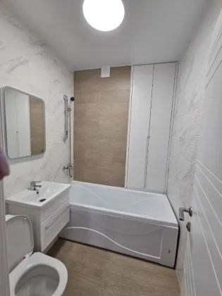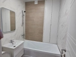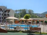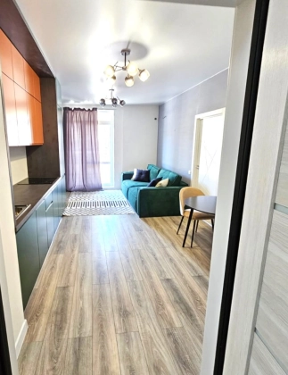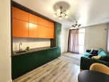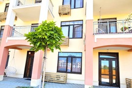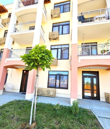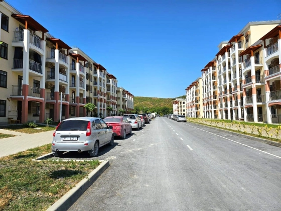 2-комнатная квартира находится на 3 этаже. Общая площадь квартиры 42,0 кв.м, жилая - 14,3 кв.м, кухня-гостиная - 20,6 кв.м, спальня - 14,3 кв.м, санузел - 5,5 кв.м. Квартиры продаются с отделкой в светлых тонах из качественных материалов. Есть открытая терраса (5,3 кв.м) с французскими оками из кухни. Вид из окна на горы и паркинг. Вода из собственной скважины. Отопление электрическое от собственной электрической подстанции.