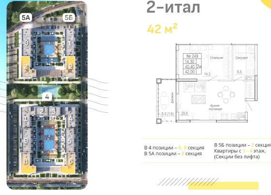 | Площадь, кв.м. | 42 |