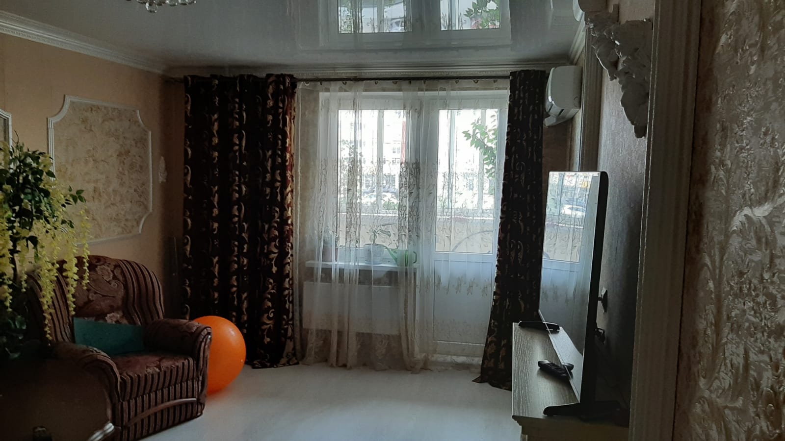 Квартира находится на 1 этаже- этаж высокий. Внизу в доме есть жилой отапливаемый цокольный этаж. Площадь квартиры 82,5 кв.м, кухня - 15,5 кв.м, комнаты раздельные - 2 спальни и зал. Раздельный туалет и ванная с душевой кабиной. Лоджия и балкон выходят на разные стороны дома. Мебель частично остается.