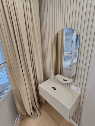 В квартире сделан евроремонт,встроенная мебель на кухне.