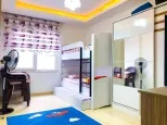 О квартире: апартаменты планировки 2+1 площадью 120 кв.м. расположены на первом высоком этаже, состоят из прихожей, гостиной с американской кухней, двух спален, двух санузлов и двух балконов. Квартира укомплектована мебелью и бытовой техникой.