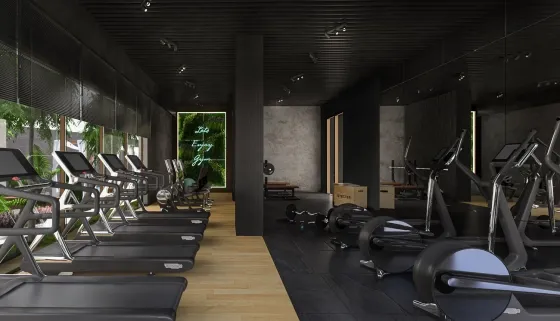 Тренажерный зал, оснащенный профессиональным оборудованием, Кафетерий