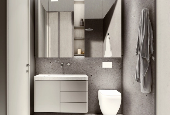 • Роскошная, светлая, керамическая плитка от пола до потолка.