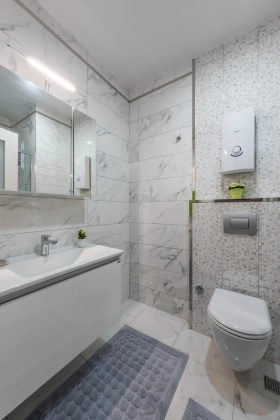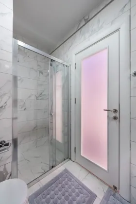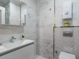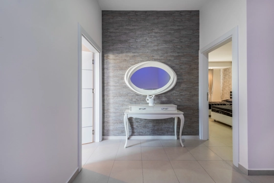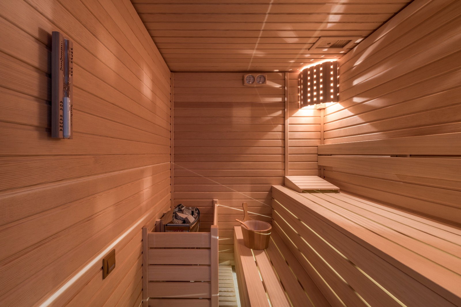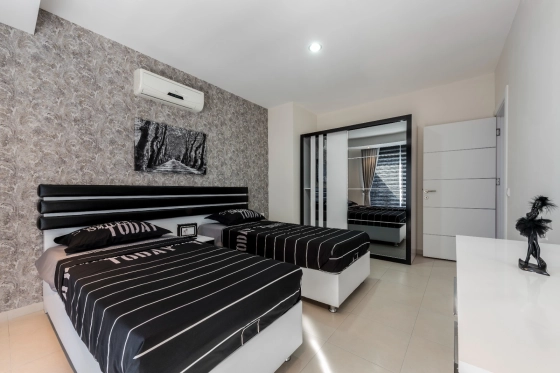 В дуплексе три спальни и просторный салон, собственная сауна и огромная джакузи. Квартира полностью меблирована и продаётся вместе с бытовой техникой.