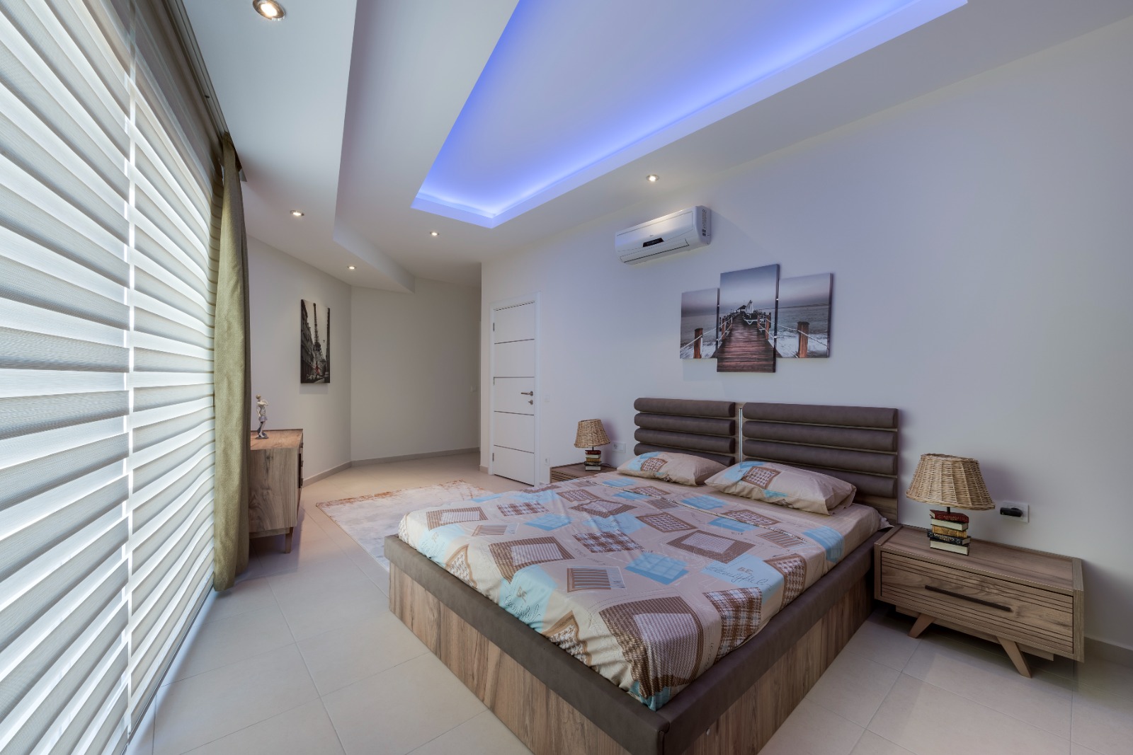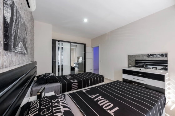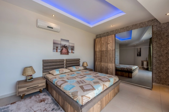 Из панорамных окон открывается великолепный вид на горы и Средиземное море. До пляжа всего 800 метров.