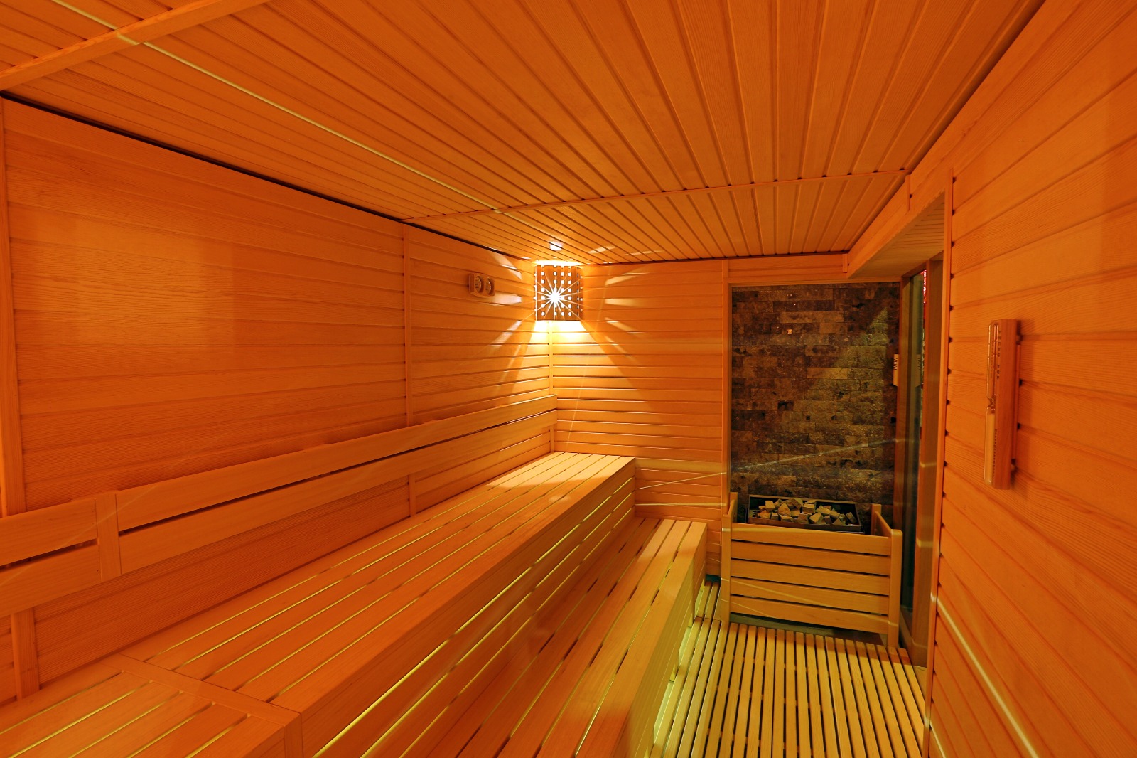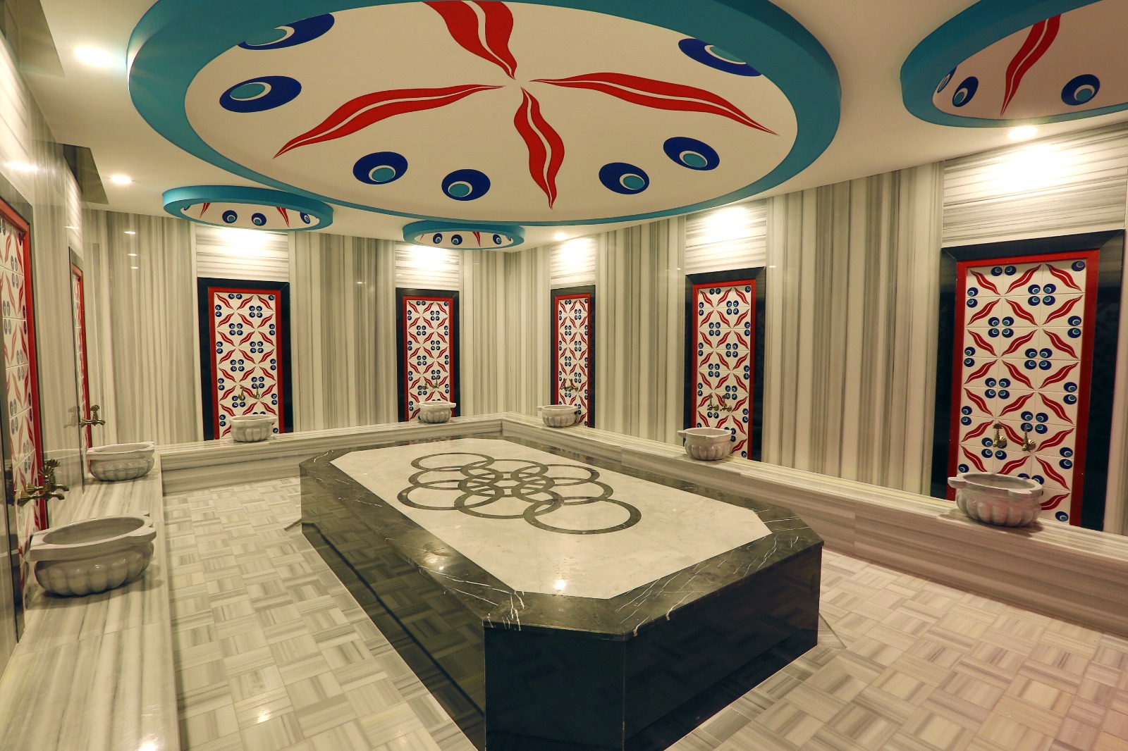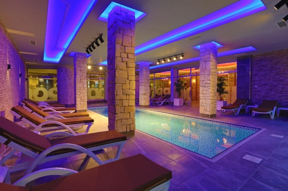 В комплексе есть открытый и крытый бассейны, паркинг, хамам, сауна, паровая, тренажерный зал.